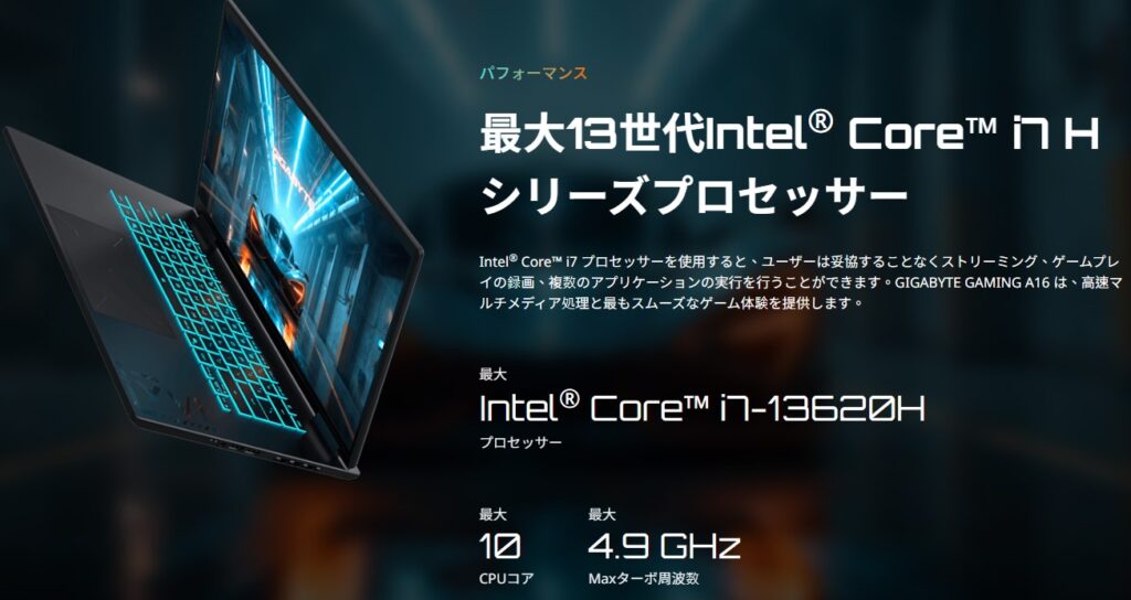 CPU Intel Core i7-13620H メモリ DDR5 16GB (16GB*1) ストレージ 512GB(M.2 NVMe)