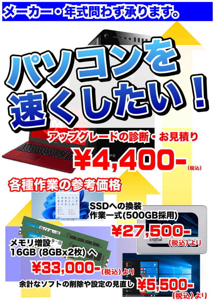 各種メーカー製パソコンの販売及び修理